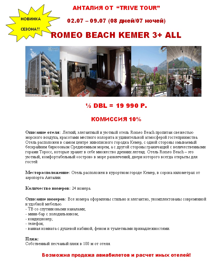28 Июн 2011 20:00:42 ТУРЦИЯ. Анталия с 02/07 - 09/07 (8 дней/7 ночей) от фирмы TRIVE ТУР