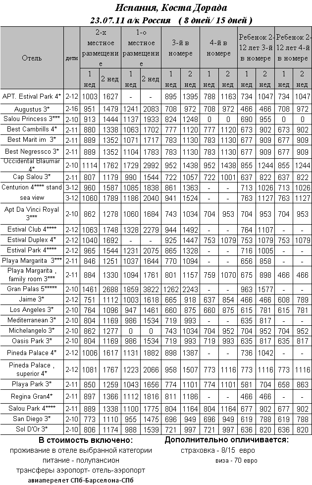 29 Июн 2011 16:07:42 ИСПАНИЯ - КОСТА ДОРАДА 23.07 на 8/15 дней от фирмы ПРИМА