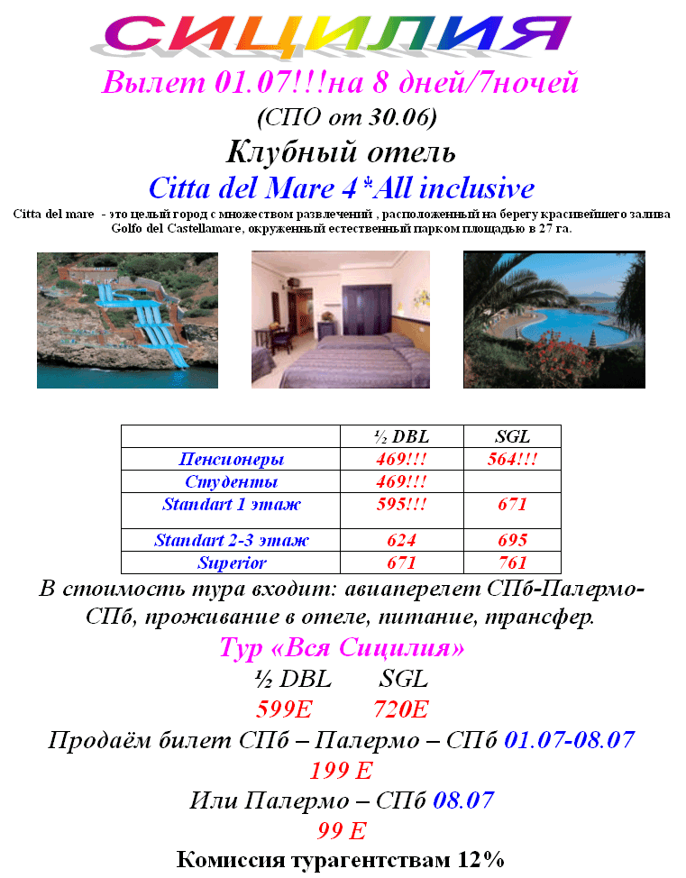 30 Июн 2011 13:20:31 ИТАЛИЯ - СИЦИЛИЯ с 01.07 на 8дн/7н Citta Del Mare 4* AI, СуперСПО от фирмы АВАТАРА
