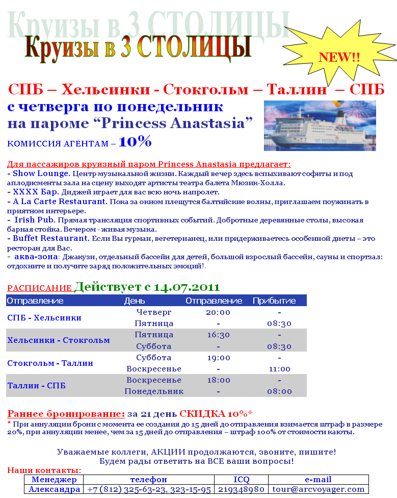 30 Июн 2011 13:43:05 КРУИЗ на "Princess Anastasia" теперь в 3 столицах НОВИНКА! от фирмы АРКТУР ВОЯДЖЕР