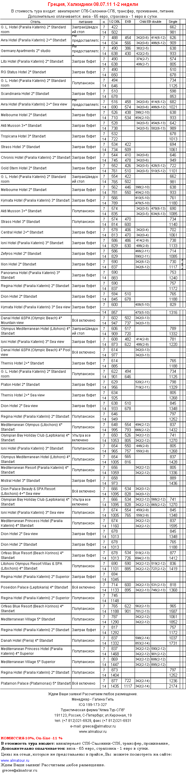 01 Июл 2011 16:27:28 ГРЕЦИЯ, Пиерия 08.07 на 7/14 ночей от фирмы АЛМА ТУР