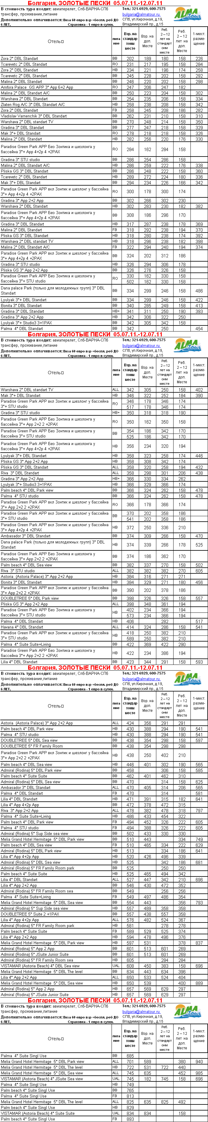 01 Июл 2011 17:52:25 БОЛГАРИЯ - ЗОЛОТЫЕ ПЕСКИ 05.07-12.07 от фирмы АЛМА ТУР