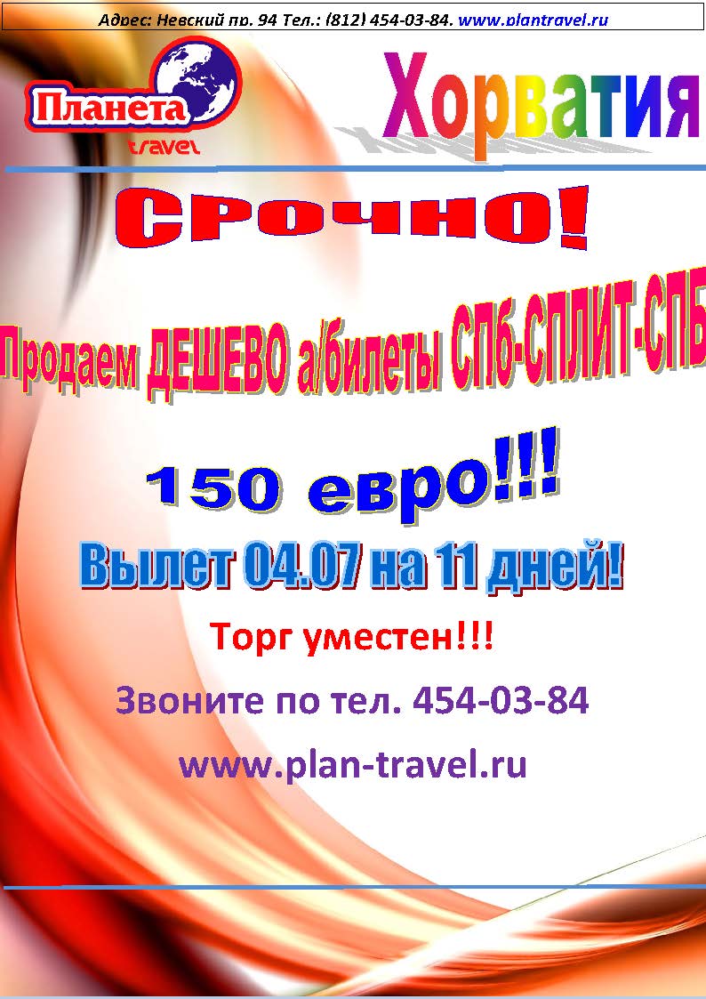 02 Июл 2011 14:05:21 ХОРВАТИЯ-СПЛИТ а/билеты ДЕШЕВО!!! от фирмы ПЛАНЕТА TRAVEL