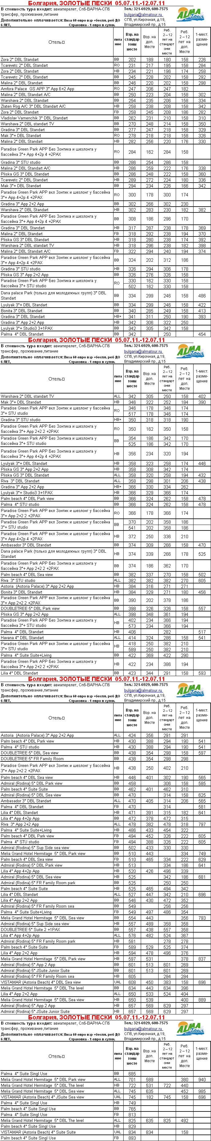 02 Июл 2011 17:24:24 БОЛГАРИЯ - ЗОЛОТЫЕ ПЕСКИ 05.07-12.07 от фирмы АЛМА ТУР