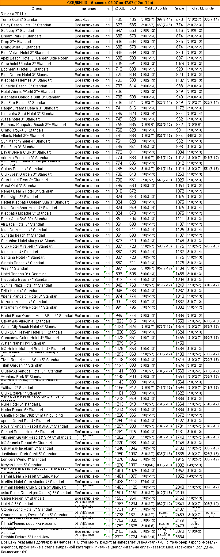 04 Июл 2011 15:01:05 ТУРЦИЯ - АЛАНИЯ 06.07-17.07 от фирмы АЛМА ТУР
