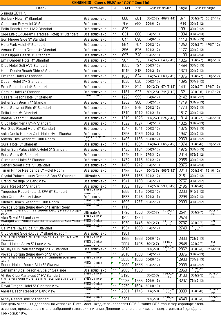 04 Июл 2011 15:02:30 ТУРЦИЯ - СИДЕ 06.07-17.07 от фирмы АЛМА ТУР
