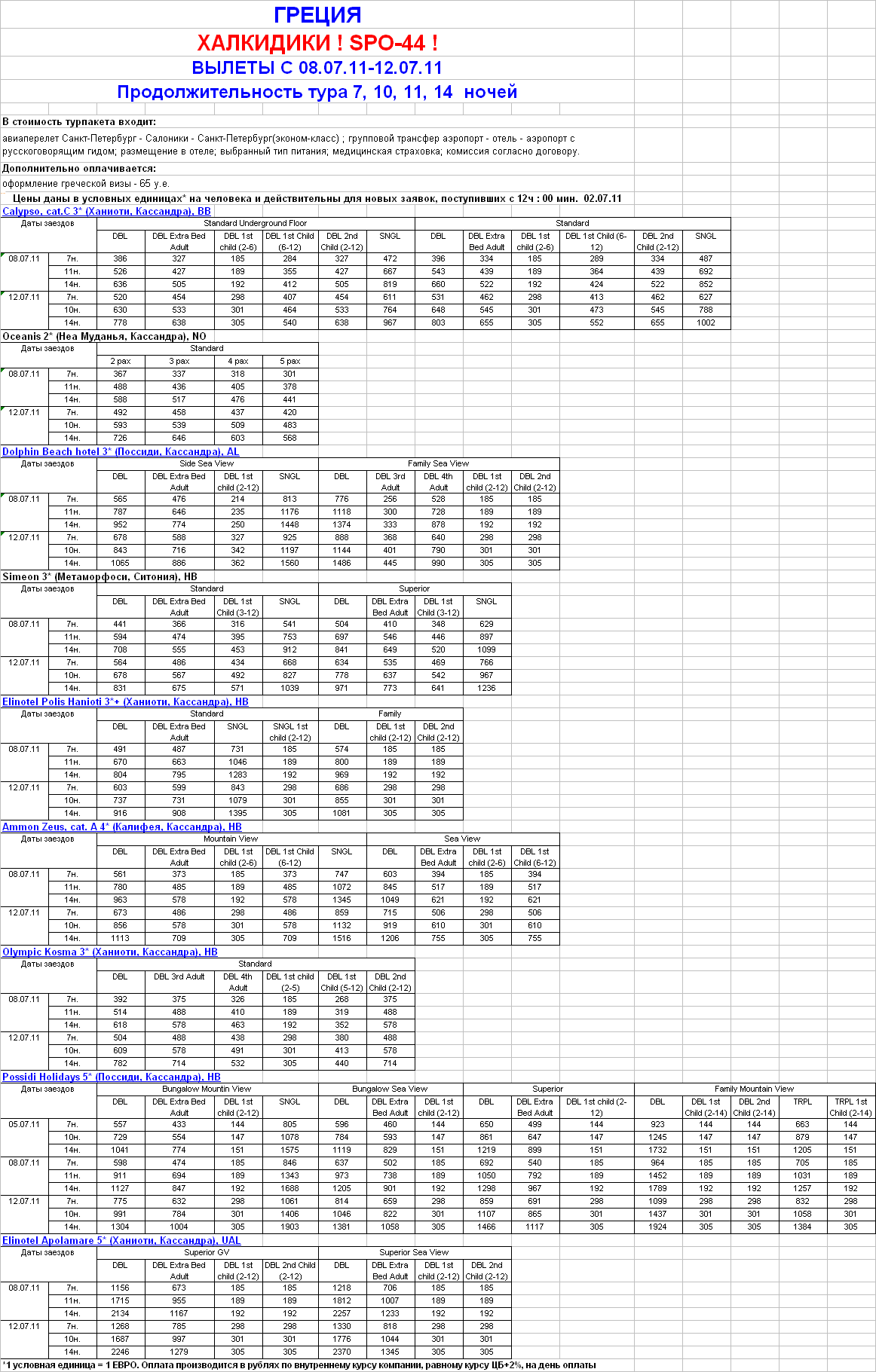 ГРЕЦИЯ, ХАЛКИДИКИ - ОТДЫХ В ИЮЛЕ от 367 у.е. от фирмы ЮЖНЫЙ КРЕСТ |