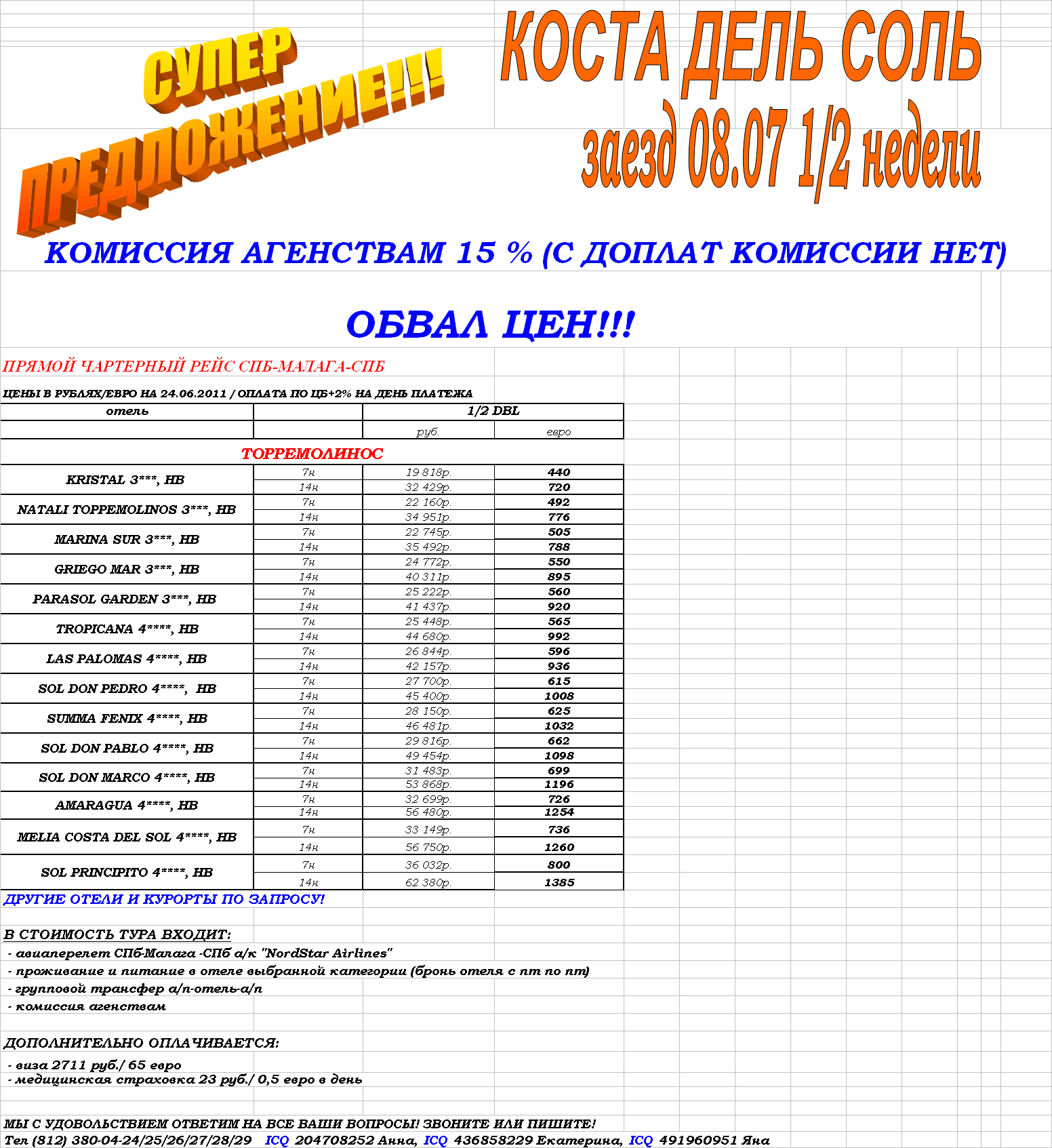 05 Июл 2011 11:07:42 ИСПАНИЯ. ОБВАЛ ЦЕН!!! КОМИССИЯ 15%. КОСТА ДЕЛЬ СОЛЬ ЗАЕЗД 08/07 1/2 НЕДЕЛИ ОТ 440 ЕВРО от фирмы АКАДЕМИЯ