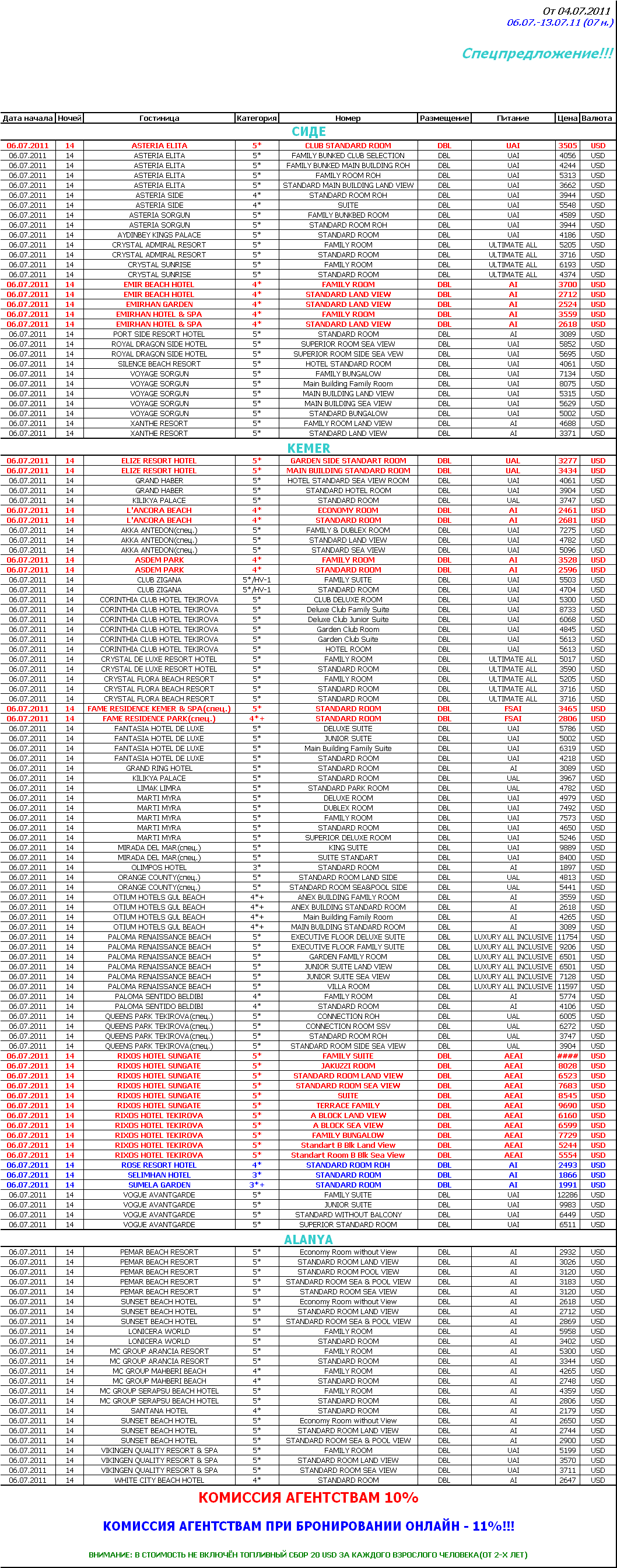 04 Июл 2011 18:02:04 ТУРЦИЯ АНТАЛИЯ 06.07 Заезд на 14 ночей, Новое СПО от 04.07 - КОЛИЧЕСТВО МЕСТ ОГРАНИЧЕНО! от фирмы КОНСОРД
