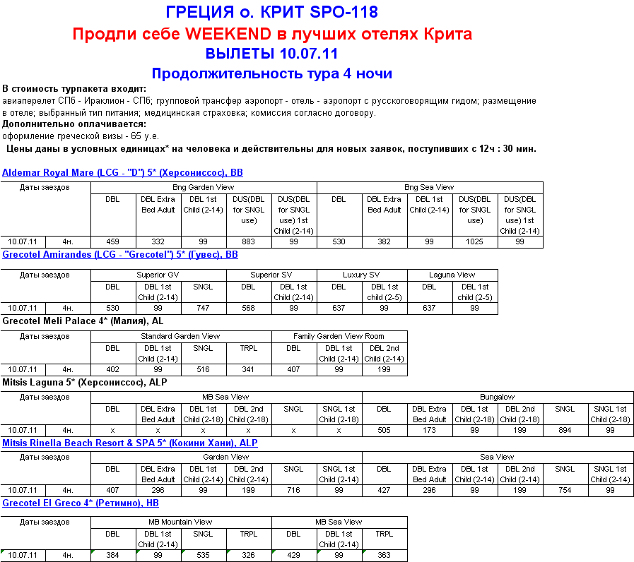 ГРЕЦИЯ, о.КРИТ - ВЫЛЕТ 10.07 - ПРОДЛИ ВЫХОДНЫЕ В ЛУЧШИХ ОТЕЛЯХ КРИТА от 384 у.е. от фирмы ЮЖНЫЙ КРЕСТ |