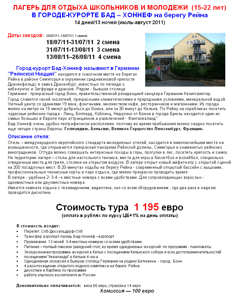 06 Июл 2011 16:08:53 ГЕРМАНИЯ: Молодежный центр от 15 до 22 лет от фирмы АЛМА ТУР