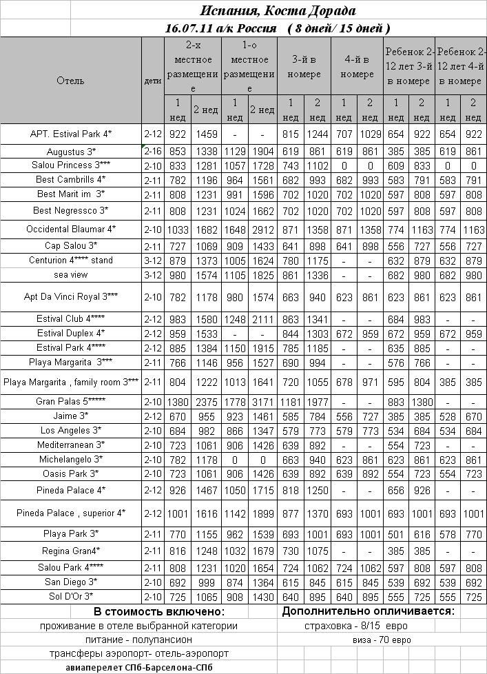 06 Июл 2011 19:01:25 ИСПАНИЯ, Коста Дорада 16.07.11 а/к Россия ( 8 дней/ 15 дней ) от фирмы ПРИМА