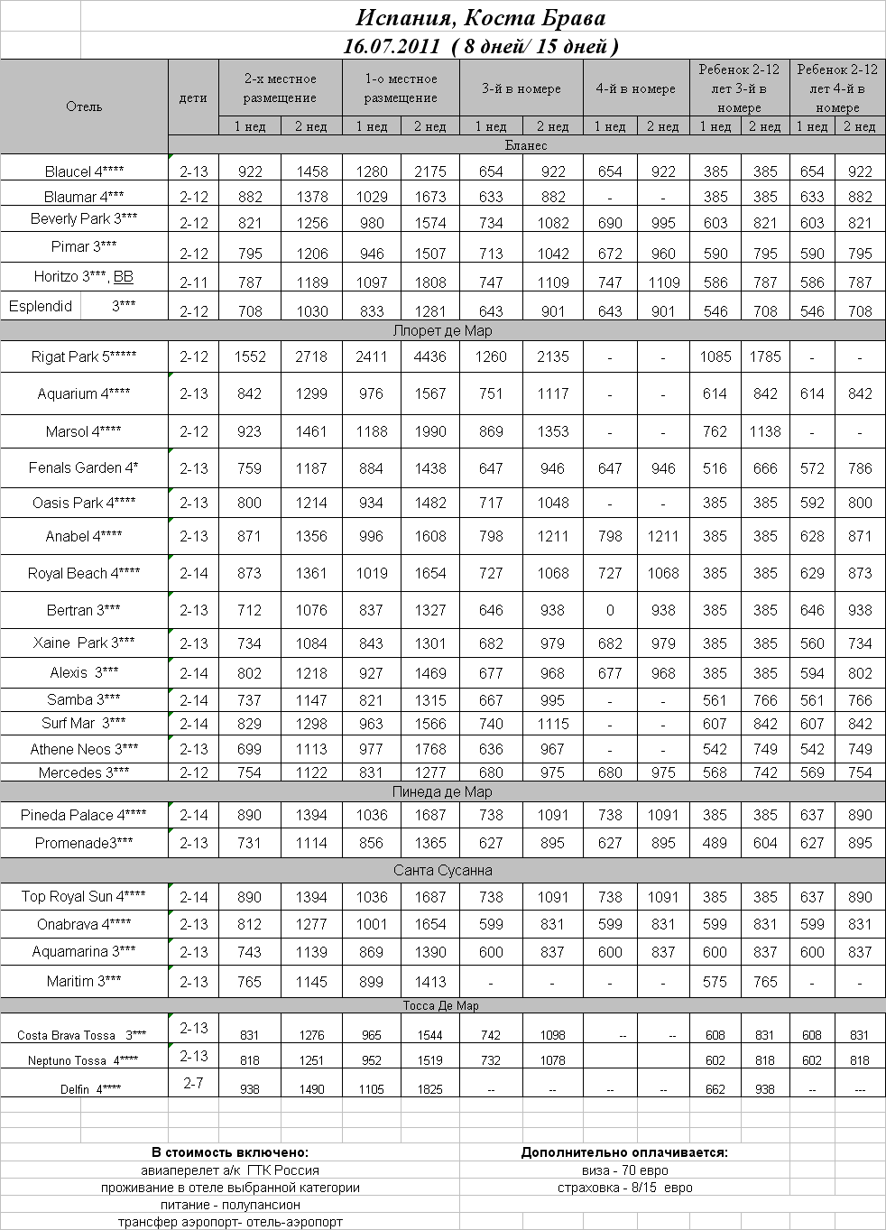 06 Июл 2011 20:01:03 ИСПАНИЯ, Коста Брава 16.07.2011 ( 8 дней/ 15 дней ) от фирмы ПРИМА