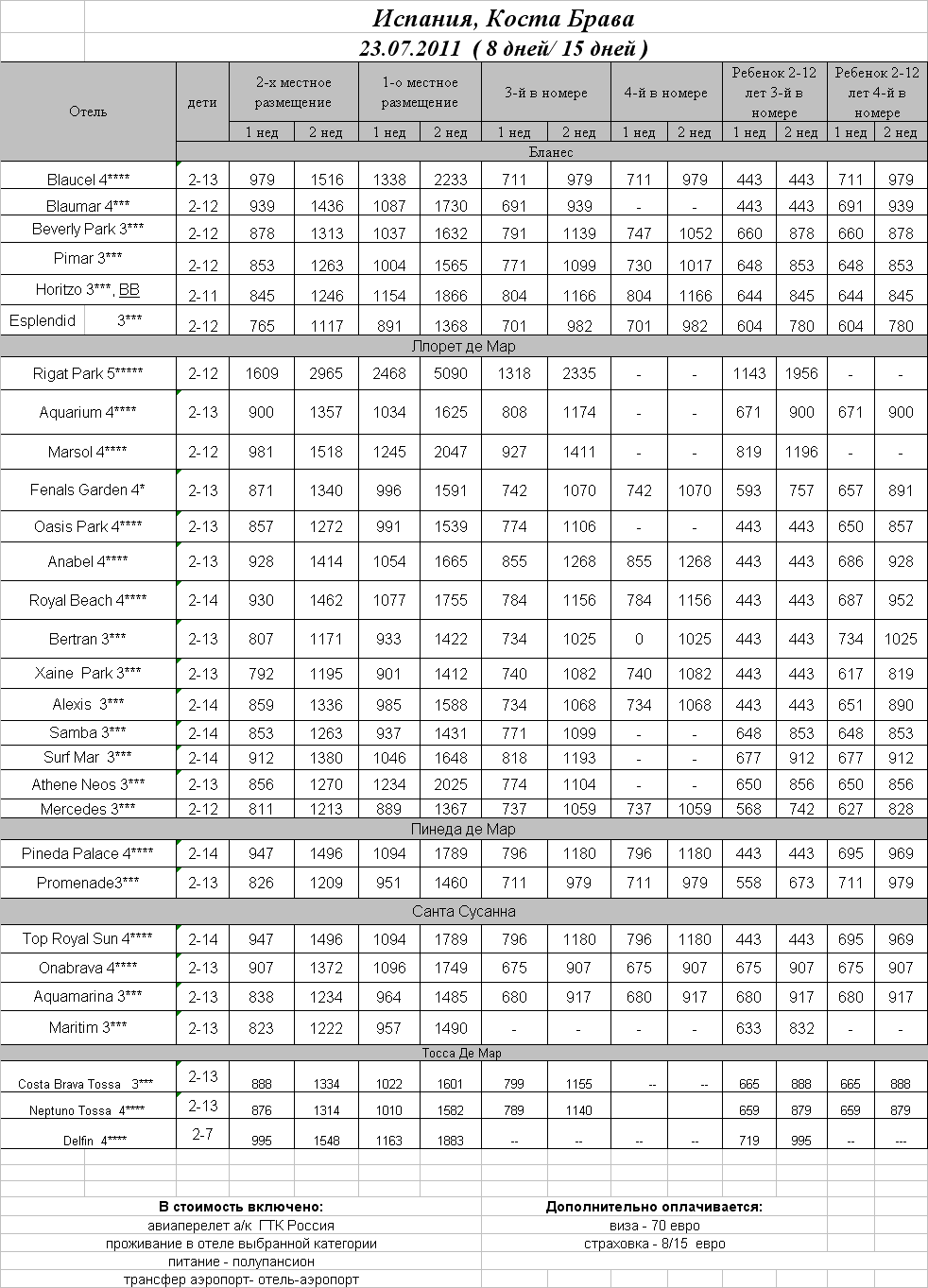06 Июл 2011 20:00:17 ИСПАНИЯ, Коста Брава 23.07.2011 ( 8 дней/ 15 дней ) от фирмы ПРИМА