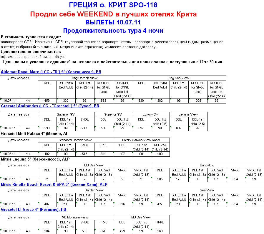 ГРЕЦИЯ,О.КРИТ - ВЫЛЕТ 10.07 - ПРОДЛИ ВЫХОДНЫЕ В ЛУЧШИХ ОТЕЛЯХ КРИТА от 384 у.е. от фирмы ЮЖНЫЙ КРЕСТ |