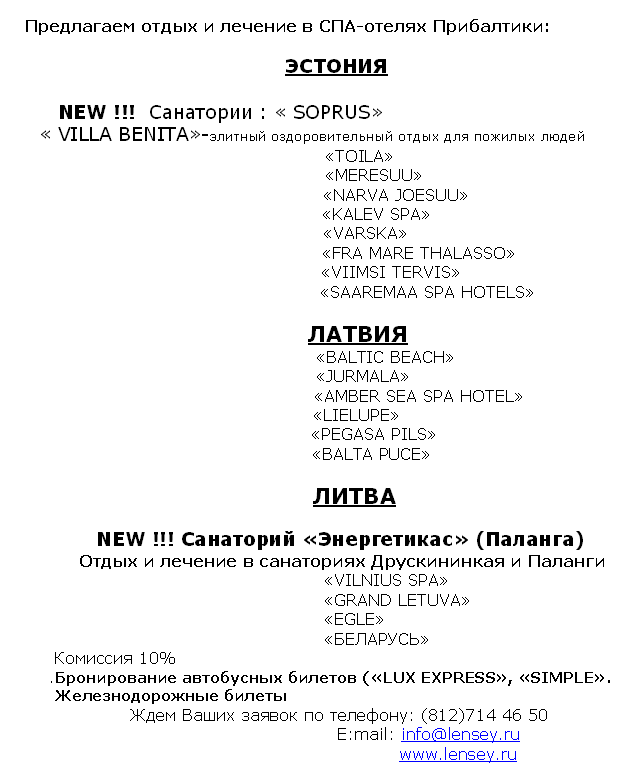 11 Июл 2011 10:23:10 ПРИБАЛТИКА. Отдых и лечение в СПА-отелях от фирмы ЛЕНСЕЙ