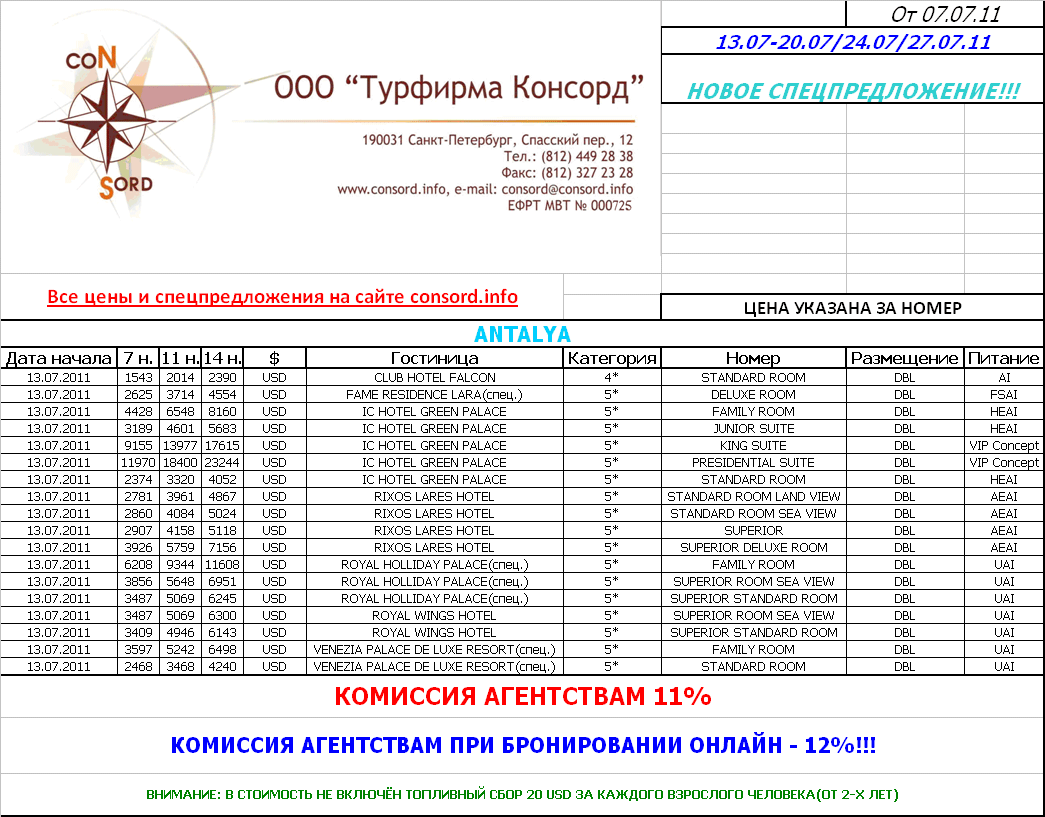 09 Июл 2011 17:00:17 ТУРЦИЯ - АНТАЛИЯ 13.07.11 7/11/14 НОЧЕЙ-НОВОЕ СПЕЦПРЕДЛОЖЕНИЕ!!! от фирмы КОНСОРД