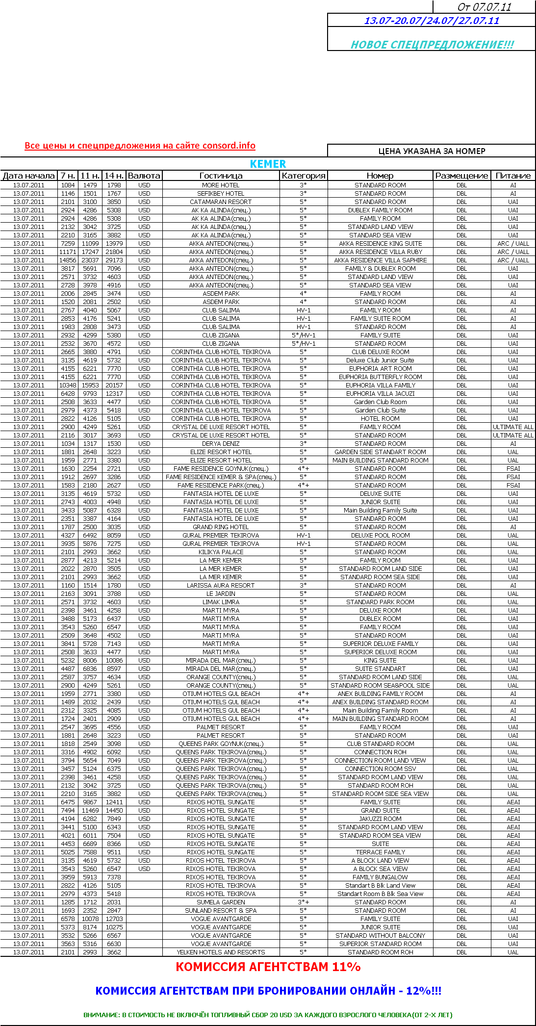 11 Июл 2011 16:05:49 ТУРЦИЯ КЕМЕР с 13.07 на 7/ 11 / 14 ночей - САМЫЕ НИЗКИЕ ЦЕНЫ от фирмы КОНСОРД