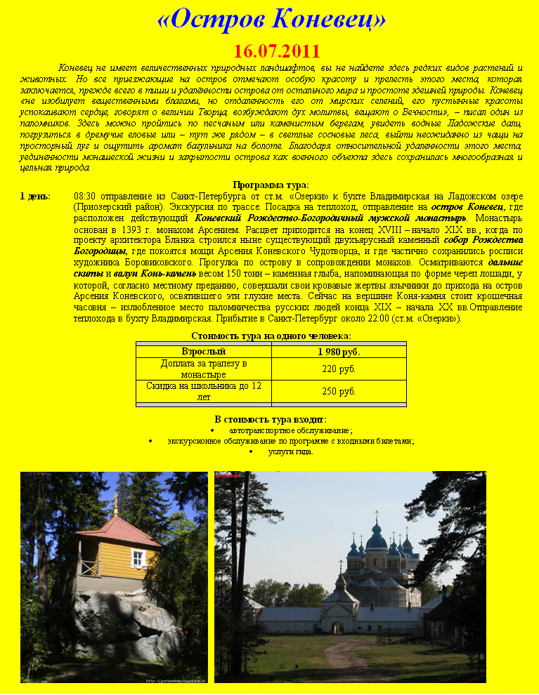 11 Июл 2011 15:18:38 РОССИЯ. <Остров Коневец> 16.07.2011 от фирмы СЕВЕРНАЯ ВЕНЕЦИЯ