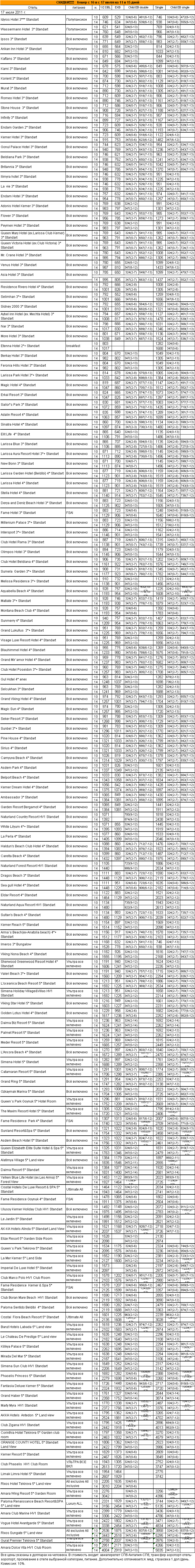 11 Июл 2011 18:09:00 ТУРЦИЯ - КЕМЕР с 16.07 и 17.07 на 11/15 дней от фирмы АЛМА ТУР
