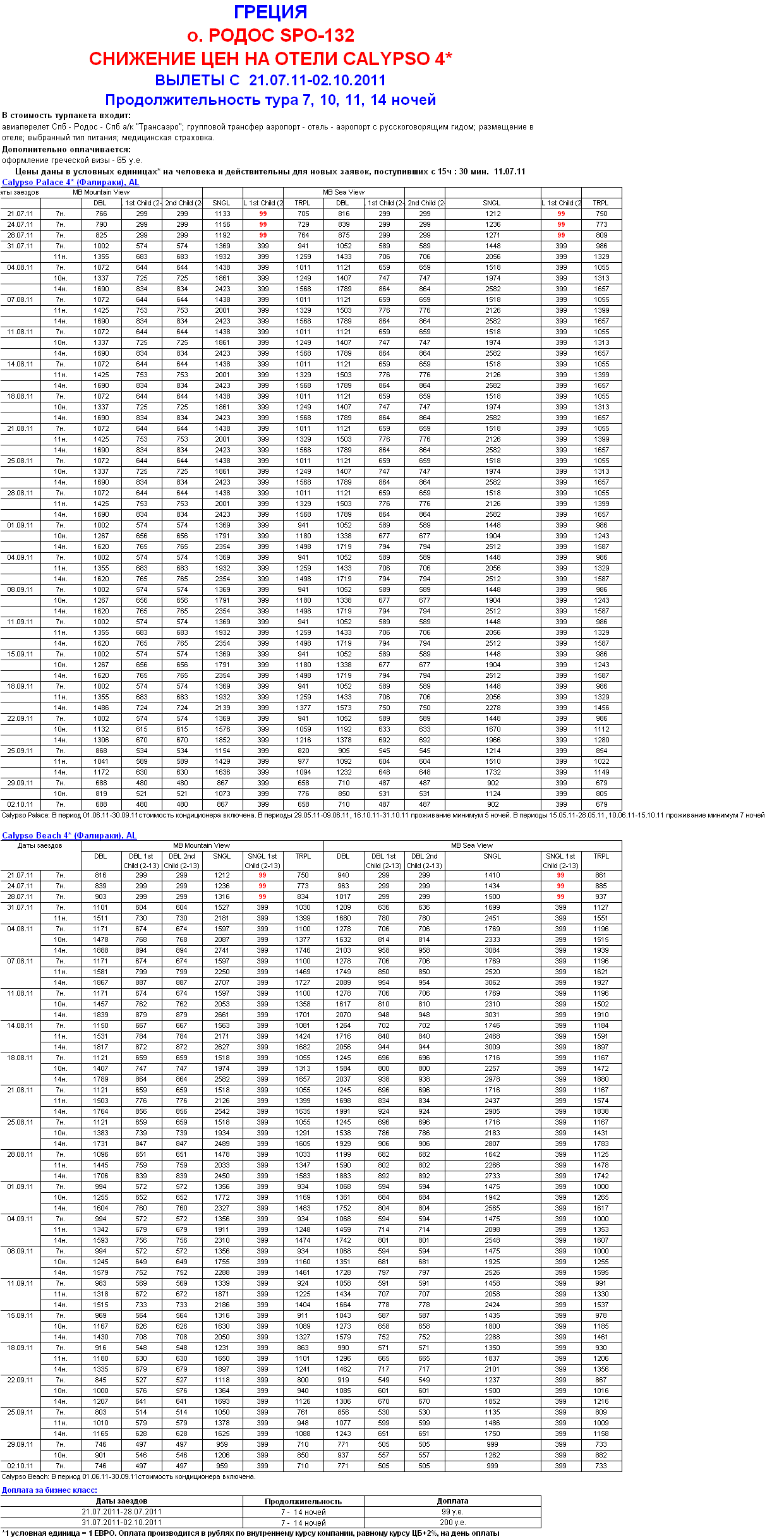 ГРЕЦИЯ,О.РОДОС - СНИЖЕНИЕ ЦЕН на отели CALYPSO 4* ALL от фирмы ЮЖНЫЙ КРЕСТ |