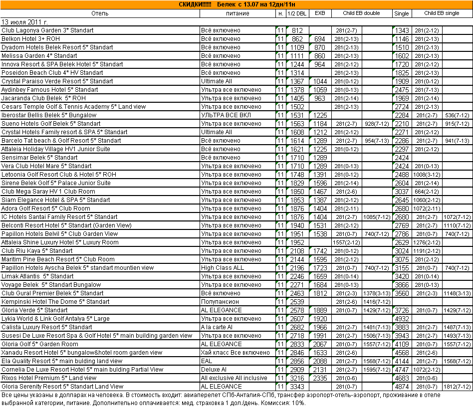 12 Июл 2011 13:02:50 ТУРЦИЯ. Белек с 13.07 на 12дн/11н от фирмы АЛМА ТУР