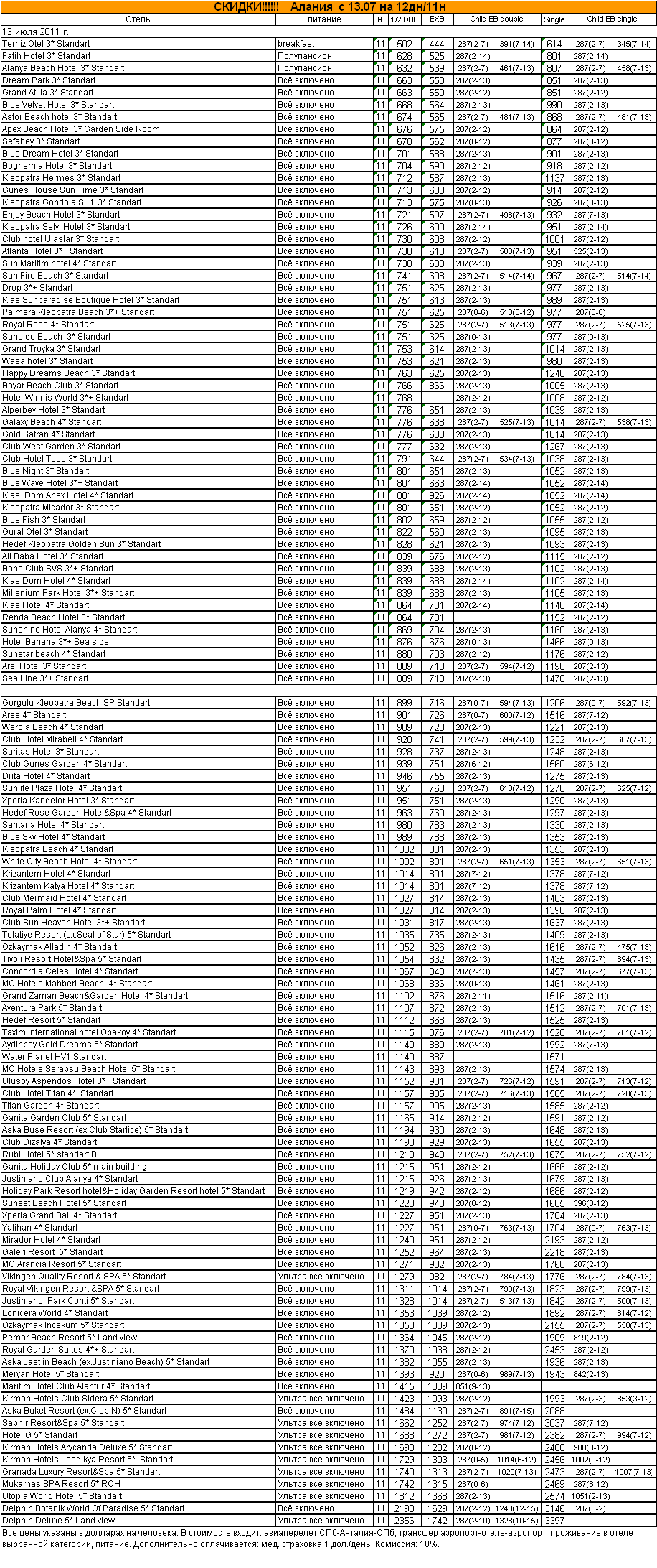 12 Июл 2011 10:43:57 ТУРЦИЯ. Алания с 13.07 на 12дн/11н от фирмы АЛМА ТУР