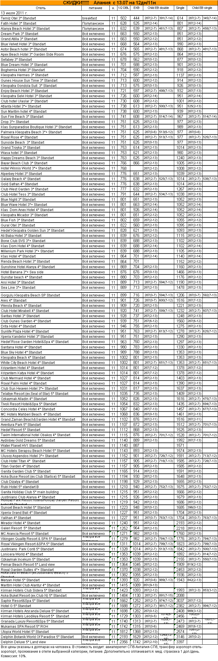 12 Июл 2011 13:33:17 ТУРЦИЯ - АЛАНИЯ с 13.07 на 12дн/11н от фирмы АЛМА ТУР