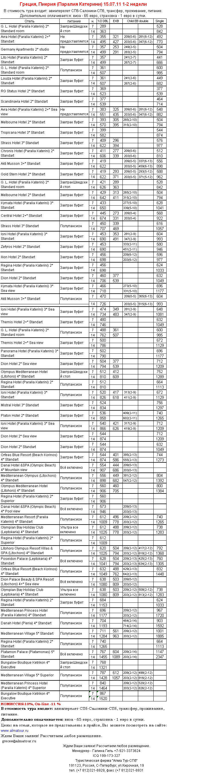 12 Июл 2011 14:32:18 ГРЕЦИЯ, Пиерия (Паралия Катерини) 15.07.11 1-2 недели от фирмы АЛМА ТУР
