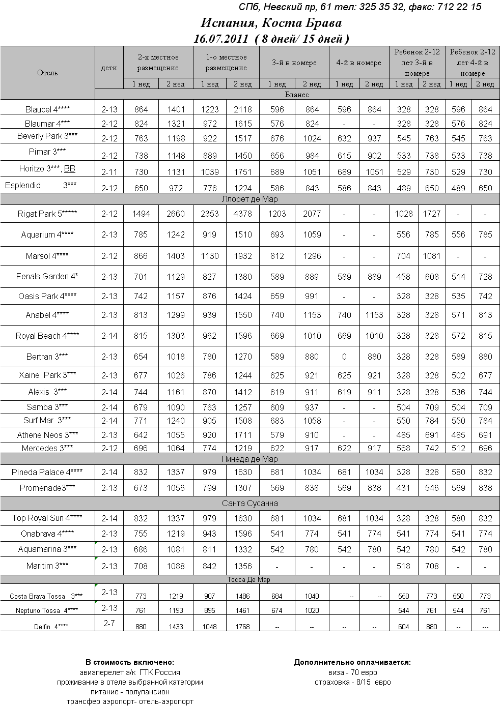 12 Июл 2011 20:00:49 ИСПАНИЯ - КОСТА БРАВА 16.07 на 8/15 дней от фирмы ПРИМА