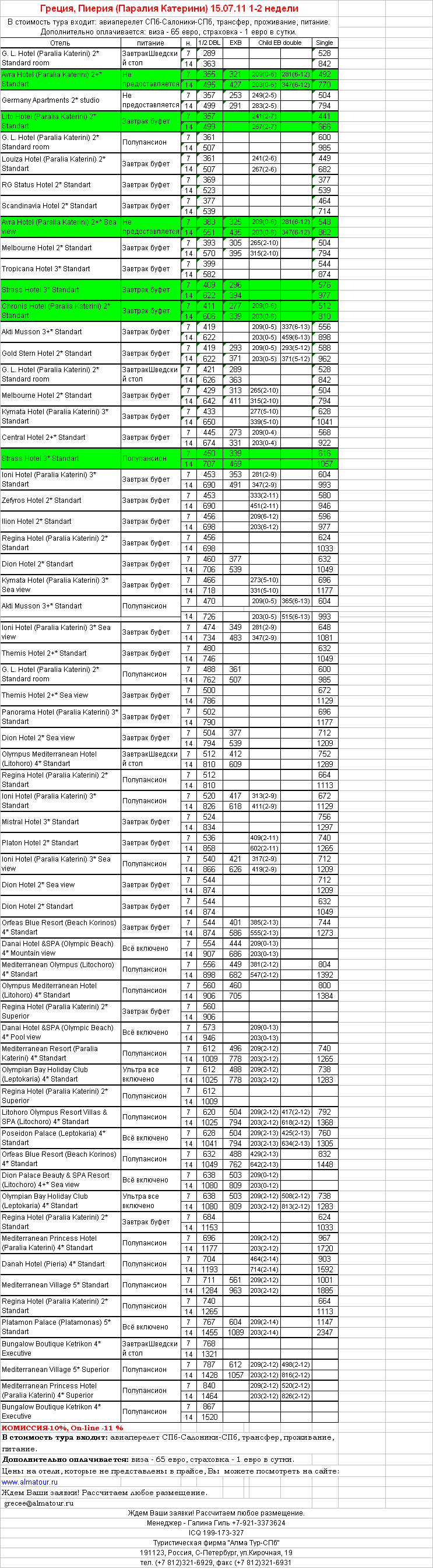 13 Июл 2011 16:17:58 ГРЕЦИЯ, Пиерия (Паралия Катерини) 15.07.11 1-2 недели от фирмы АЛМА ТУР