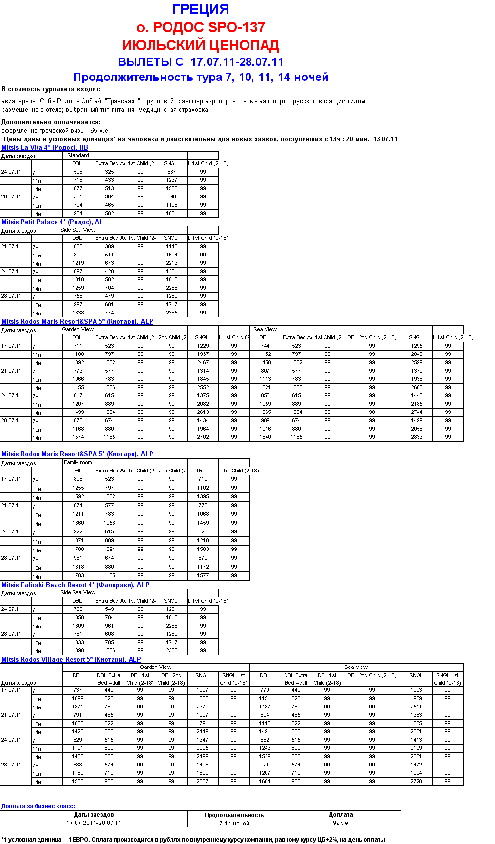 ГРЕЦИЯ Родос ИЮЛЬСКИЙ ЦЕНОПАД НА ОТЕЛИ MITSIS ДЕТИ ДО 18 ЛЕТ 99 У.Е. от фирмы ЮЖНЫЙ КРЕСТ |