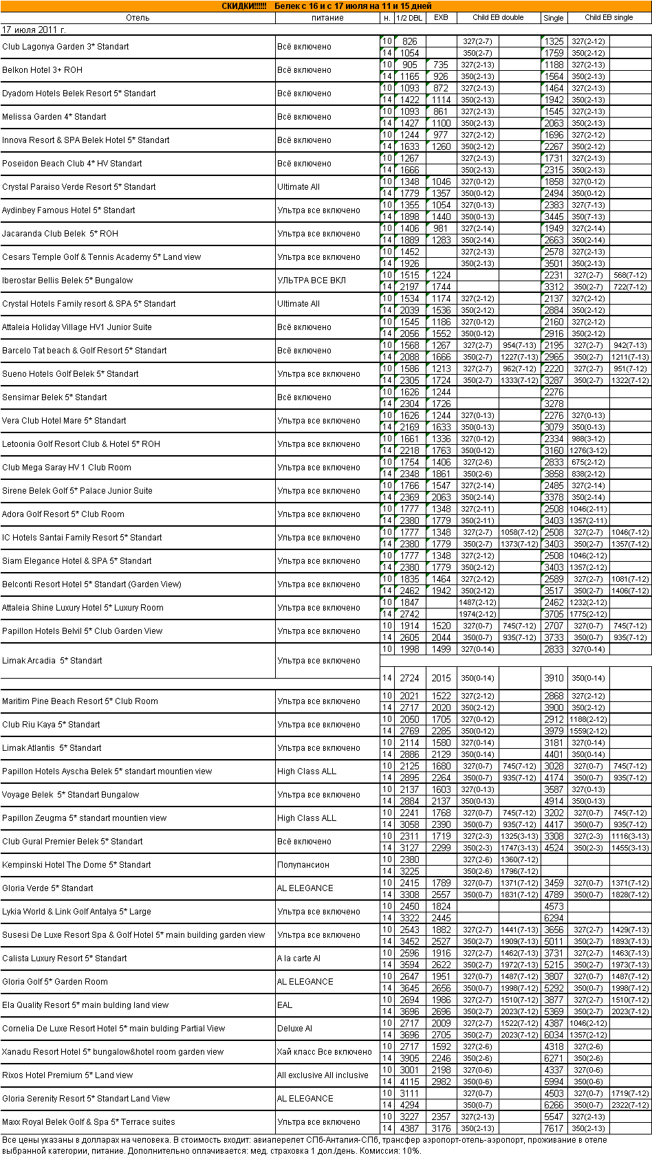15 Июл 2011 14:12:11 ТУРЦИЯ. Белек с 16 и с 17 июля на 11 и 15 дней от фирмы АЛМА ТУР