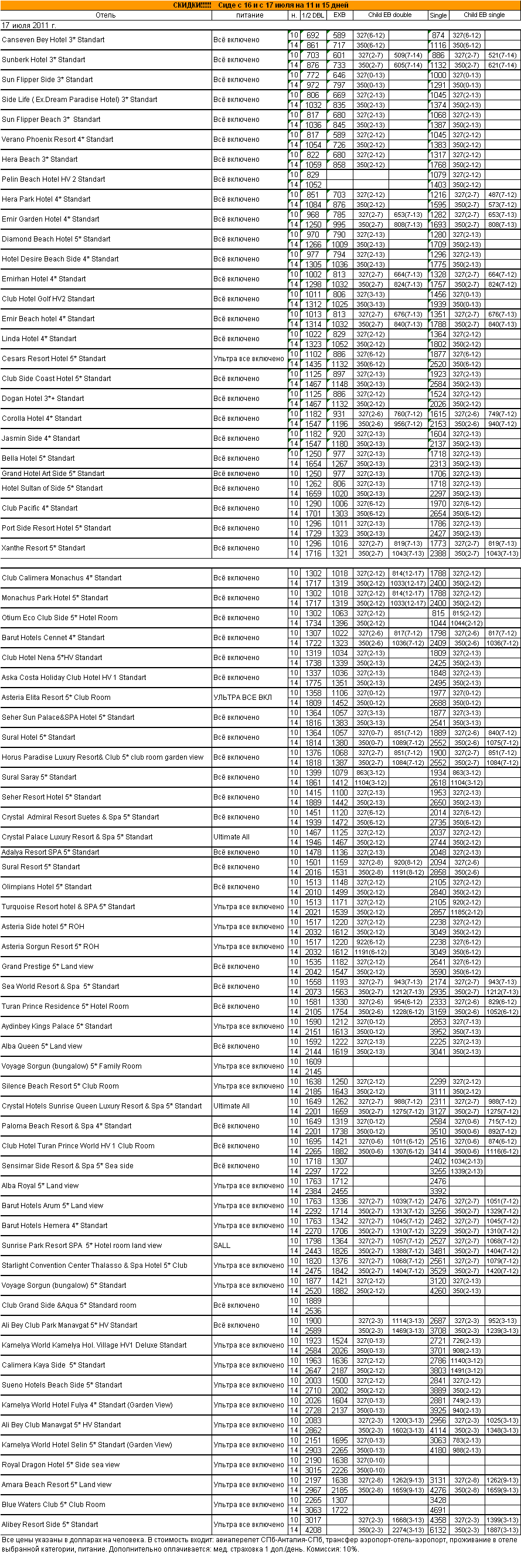 15 Июл 2011 14:11:05 ТУРЦИЯ. Сиде с 16 и с 17 июля на 11 и 15 дней от фирмы АЛМА ТУР