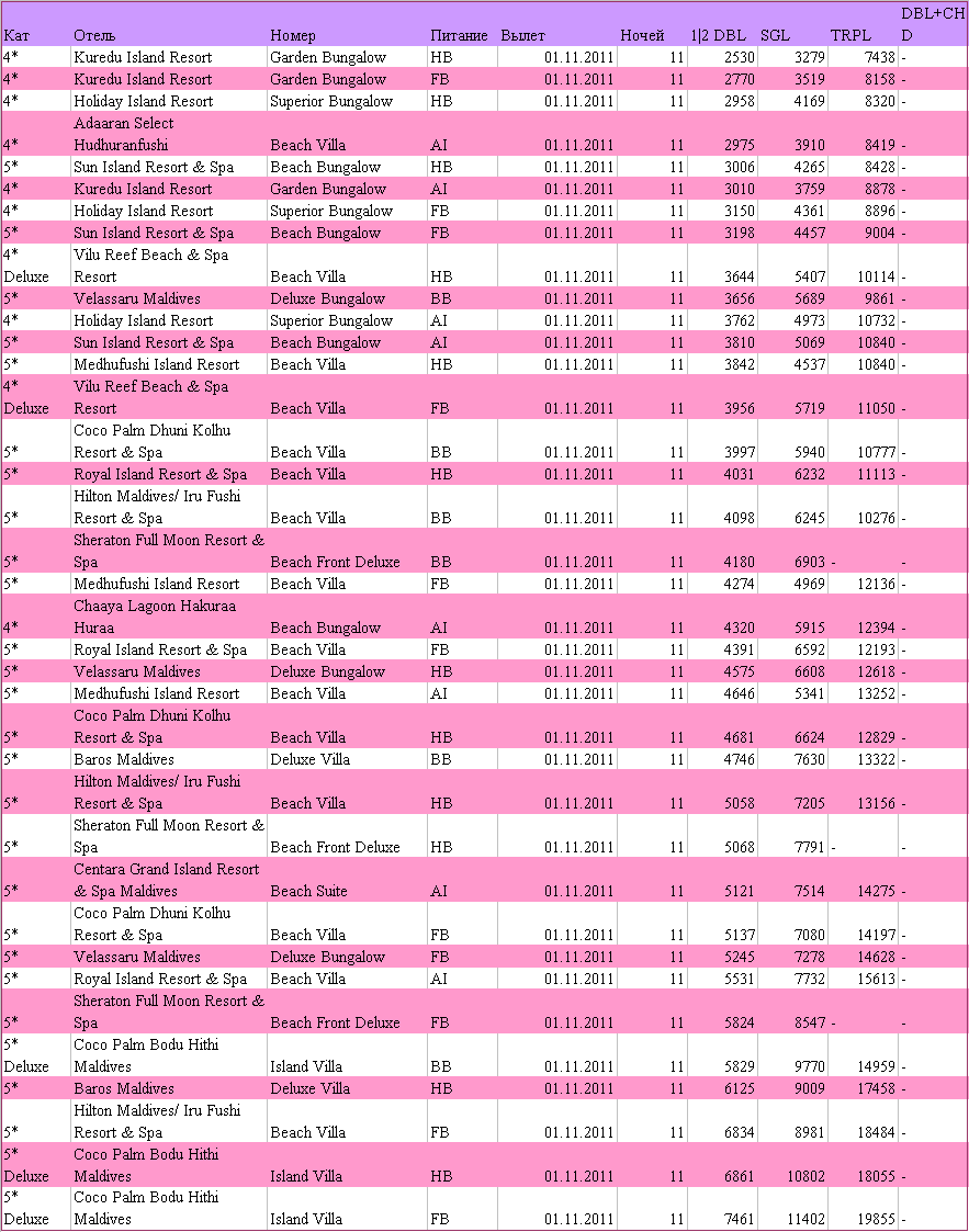 - Проживание на Мальдивах в выбранном отеле на базе