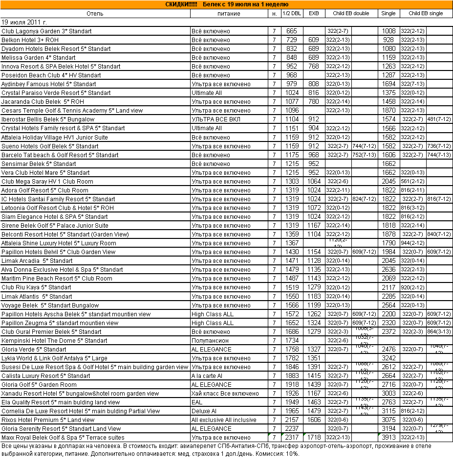 15 Июл 2011 17:01:49 ТУРЦИЯ - Белек с 19.07 на 1 неделю от фирмы АЛМА ТУР