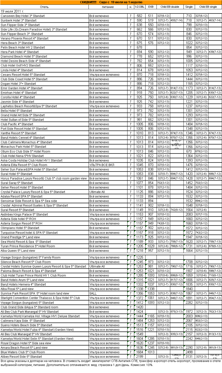 15 Июл 2011 17:02:30 ТУРЦИЯ - Сиде с 19.07 на 1 неделю от фирмы АЛМА ТУР