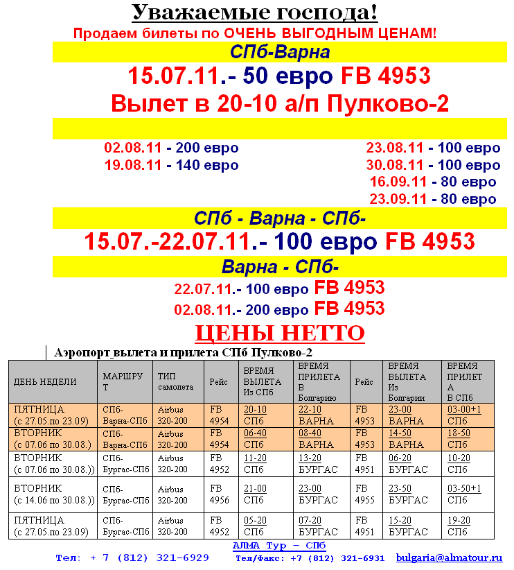 15 Июл 2011 14:32:50 БОЛГАРИЯ Распродажа авиабилетов Варна от фирмы АЛМА ТУР