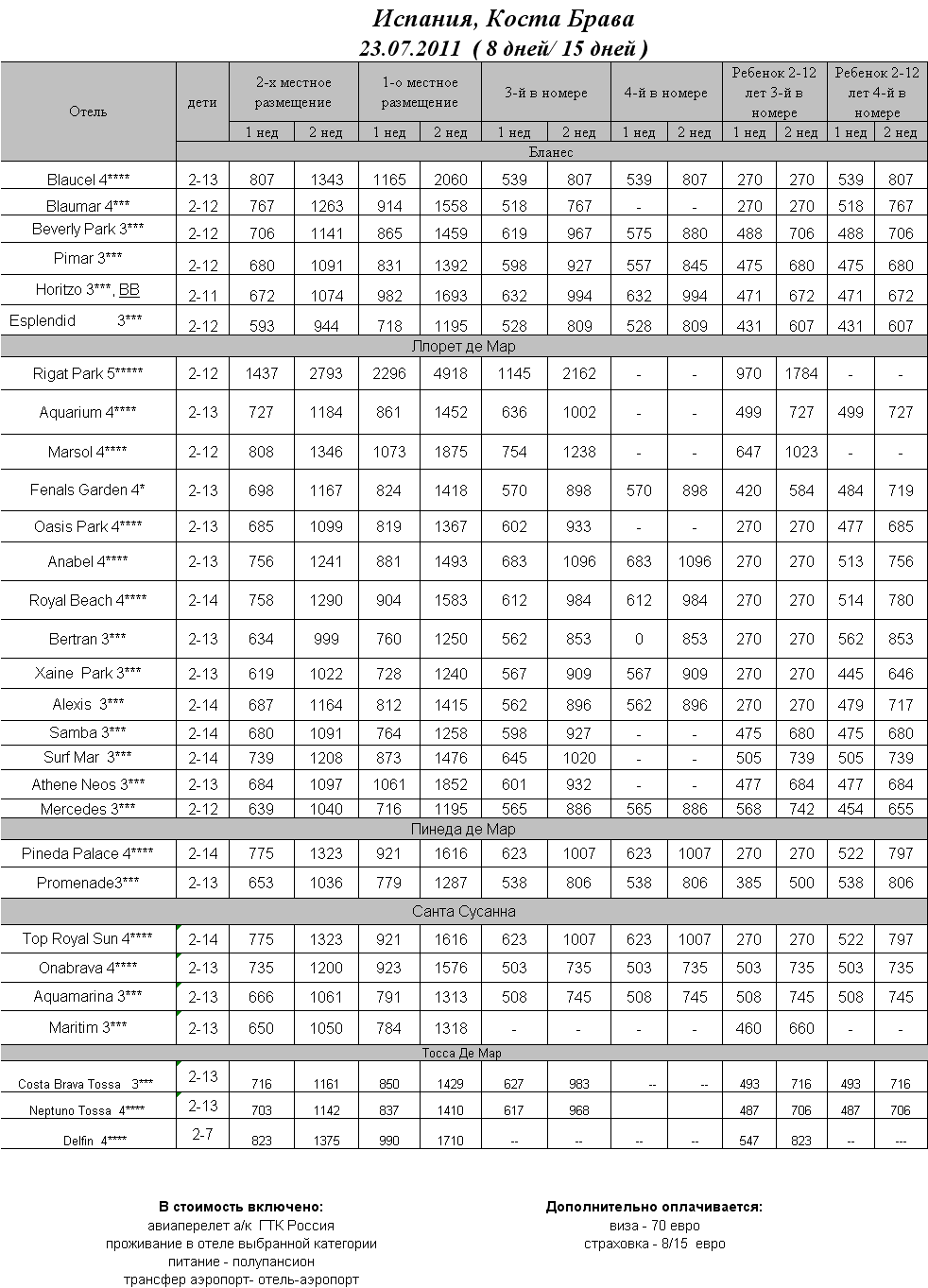 18 Июл 2011 14:08:16 ИСПАНИЯ - КОСТА БРАВА с 23.07 на 8/15 дней от фирмы ПРИМА