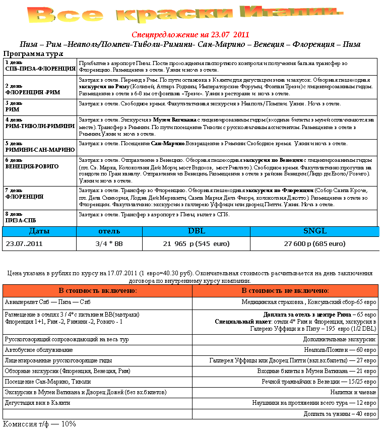 19 Июл 2011 12:29:54 ИТАЛИЯ Все краски Италии (Пиза) СПО 23.07 от фирмы ФЛАМИНГО