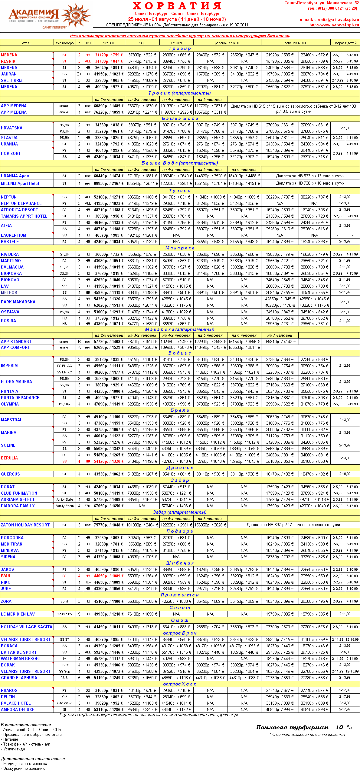 19 Июл 2011 13:34:49 ХОРВАТИЯ 25.07-04.08 Средняя Далмация от фирмы АКАДЕМИЯ