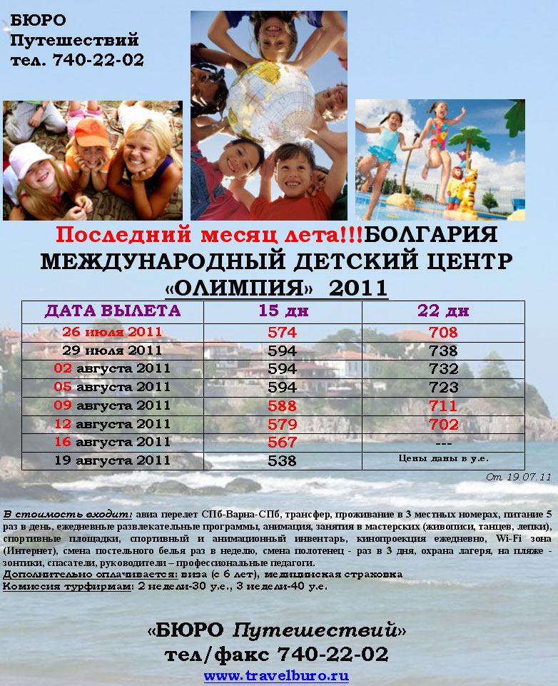19 Июл 2011 17:01:15 БОЛГАРИЯ - Лагерь "ОЛИМПИЯ" Сказочное лето от фирмы БЮРО ПУТЕШЕСТВИЙ