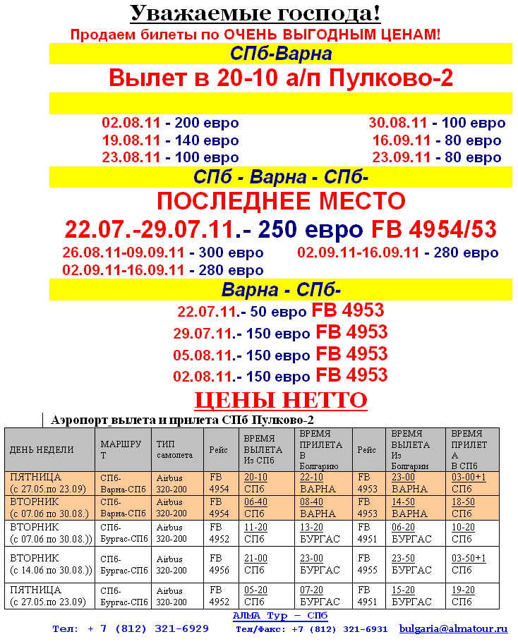 19 Июл 2011 16:16:22 БОЛГАРИЯ Распродажа авиабилетов Варна от фирмы АЛМА ТУР