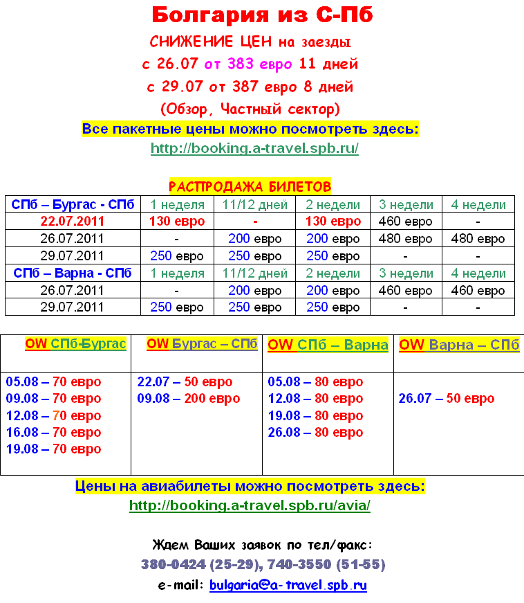 20 Июл 2011 13:12:31 БОЛГАРИЯ. РАСПРОДАЖА ТУРОВ И БИЛЕТОВ ОТ 50 ЕВРО от фирмы АКАДЕМИЯ