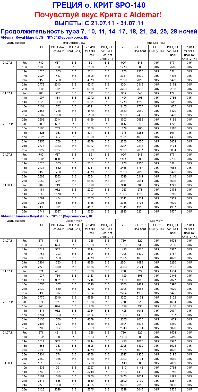 ГРЕЦИЯ, о.КРИТ - ВЫЛЕТЫ 24.07 - 04.08 - НОВЫЕ СКИДКИ НА ОТЕЛИ ALDEMAR 5* от фирмы ЮЖНЫЙ КРЕСТ |