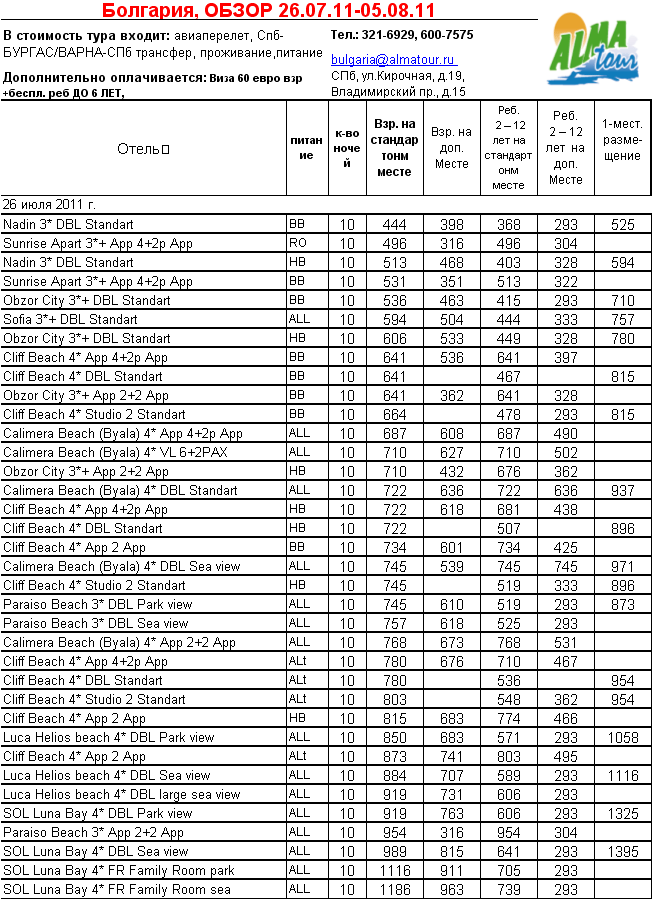 21 Июл 2011 15:52:46 БОЛГАРИЯ, ОБЗОР 26.07-05.08 от фирмы АЛМА ТУР