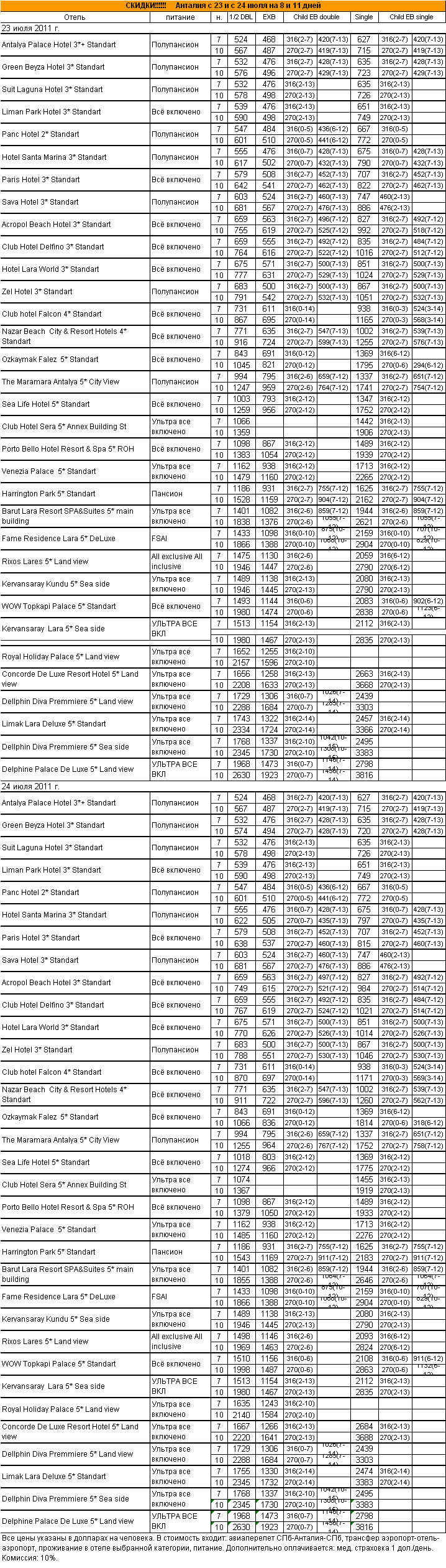 21 Июл 2011 17:07:19 ТУРЦИЯ Анталия с 23.07 и с 24.07 на 8 и 11 дней от фирмы АЛМА ТУР