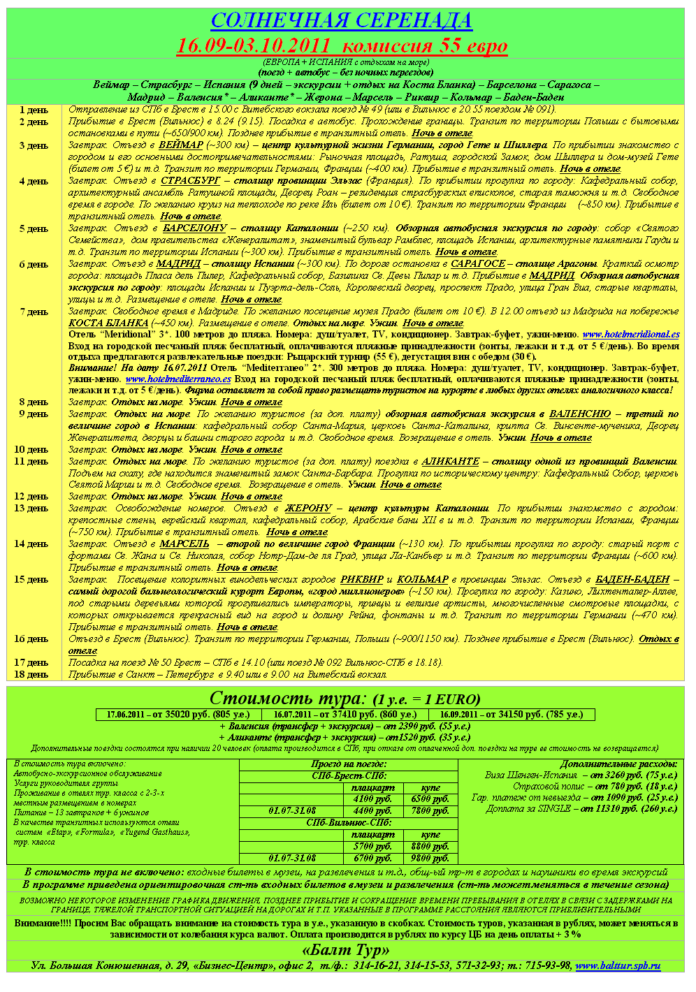 22 Июл 2011 10:44:10 ЕВРОПА+ИСПАНИЯ с отдыхом на море - СОЛНЕЧНАЯ СЕРЕНАДА 16.09-03.10.2011 от фирмы БАЛТТУР