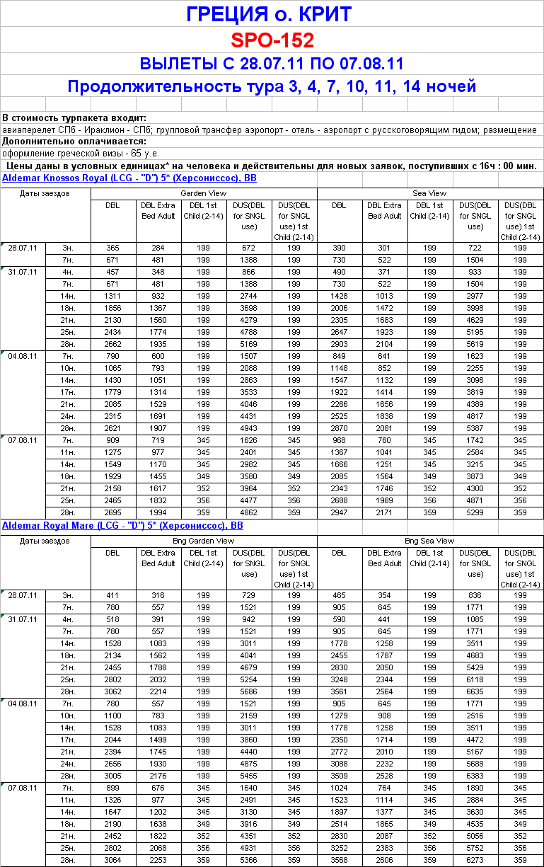 ГРЕЦИЯ, о.КРИТ - ВЫЛЕТЫ с 28.07 по 07.08 - ОТЕЛИ ALDEMAR 5* ОТ 365 у.е. от фирмы ЮЖНЫЙ КРЕСТ |