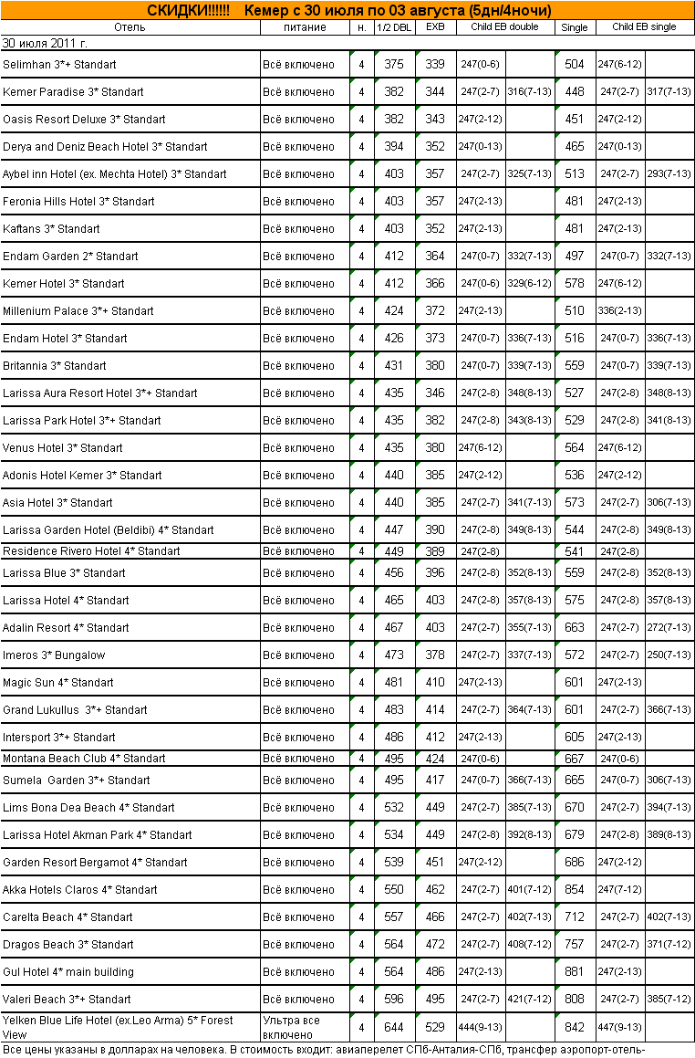 26 Июл 2011 15:01:29 ТУРЦИЯ Кемер с 30 июля по 03 августа (5дн/4ночи) от фирмы АЛМА ТУР
